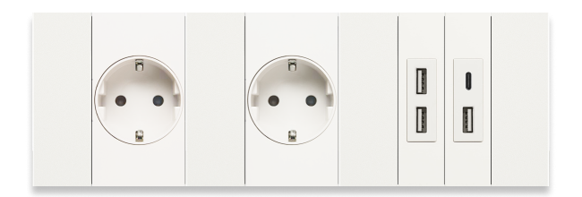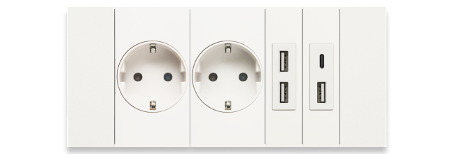 Благодаря утапливаемой лицевой панели, розетки образуют единую плоскость с рамкой. Поверхность легко поддерживать в идеальной чистоте.